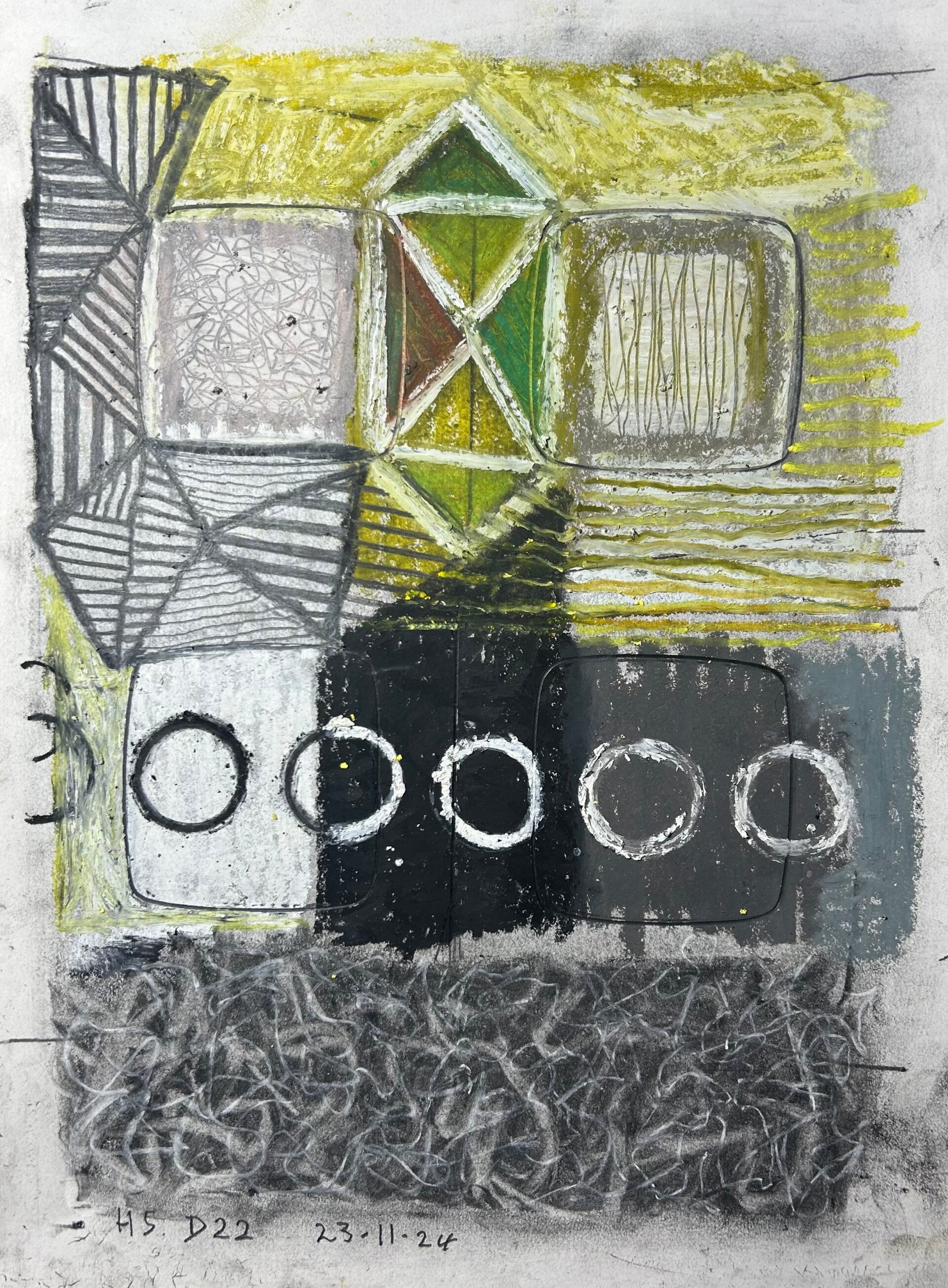 D22 23.11.24. Graphite, charcoal, oil crayon 29.7x42x0.1 cm. £100.