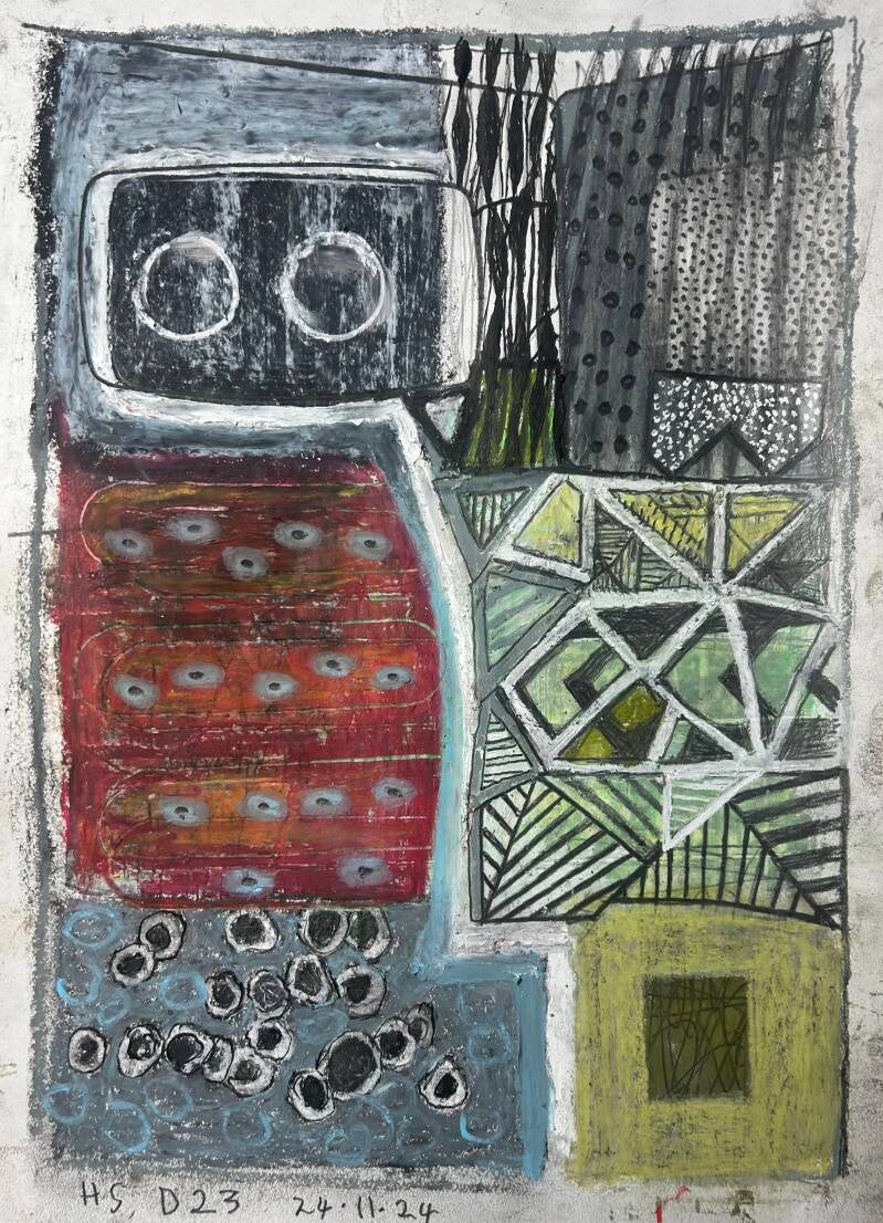 D23 24.11.24. Mixed media 29.7x 42x0.1 cm. £100.