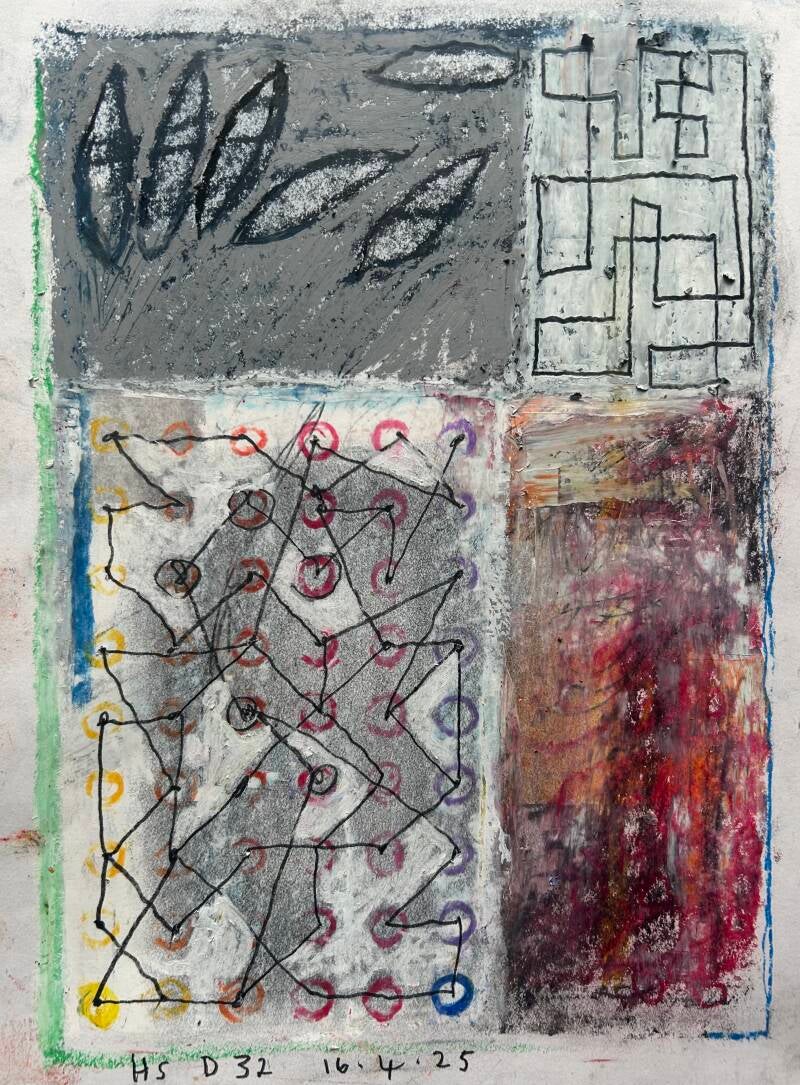 D32 16.4.25. Mixed media 29.7x42x0.1 cm. £100.