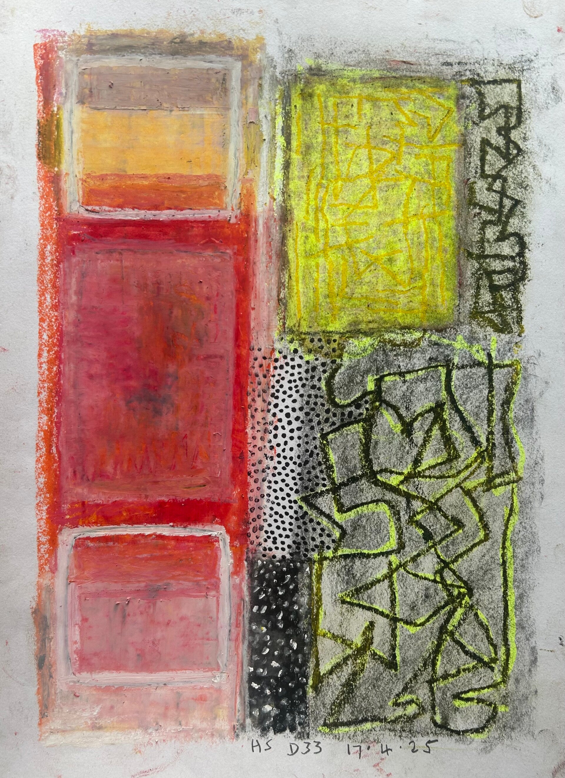 D33 17.4.25. Mixed media 29.7x42x0.1 cm. £100.