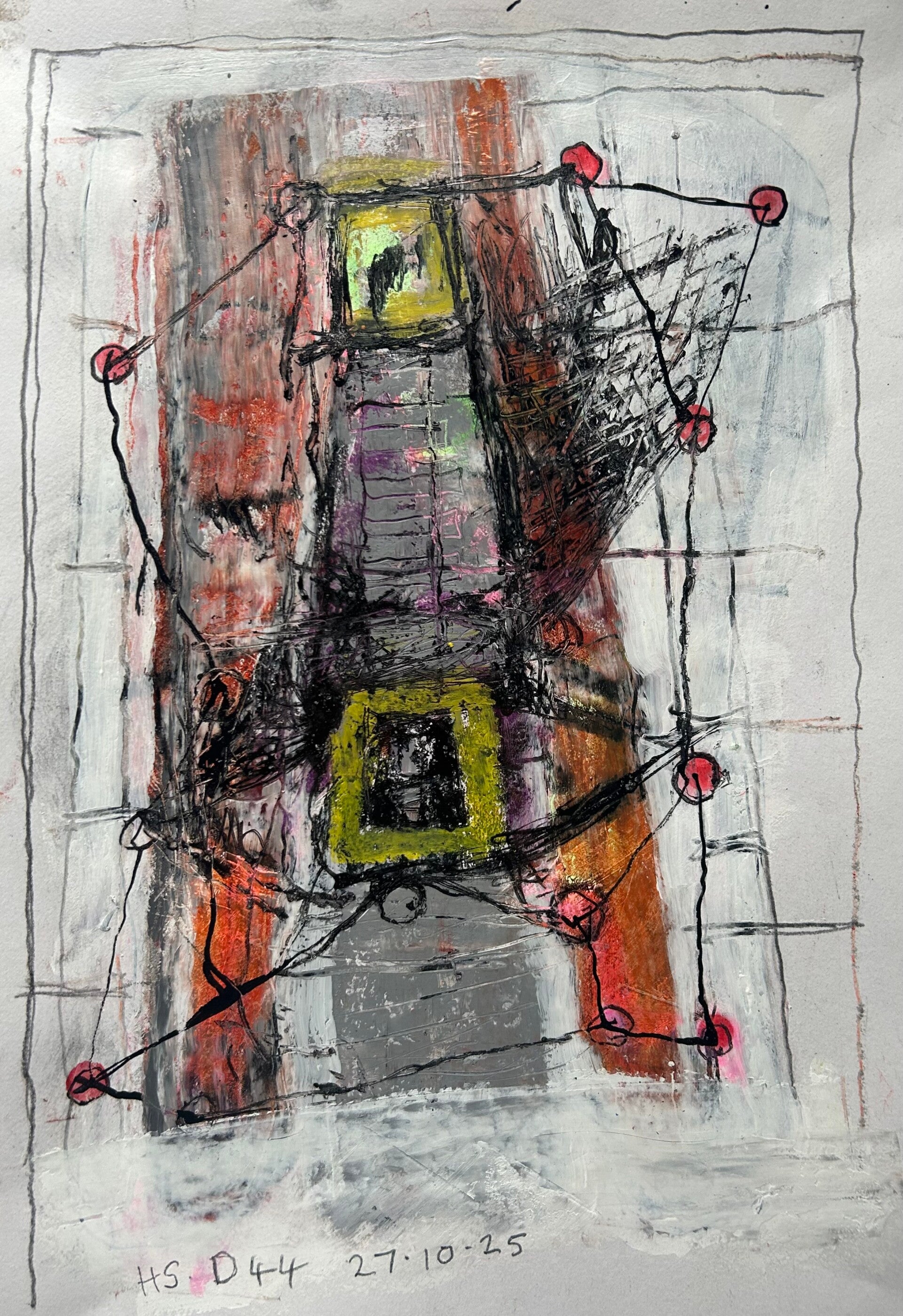 D44 27.10.25. Mixed media 29.7x42x0.1 cm. £100.
