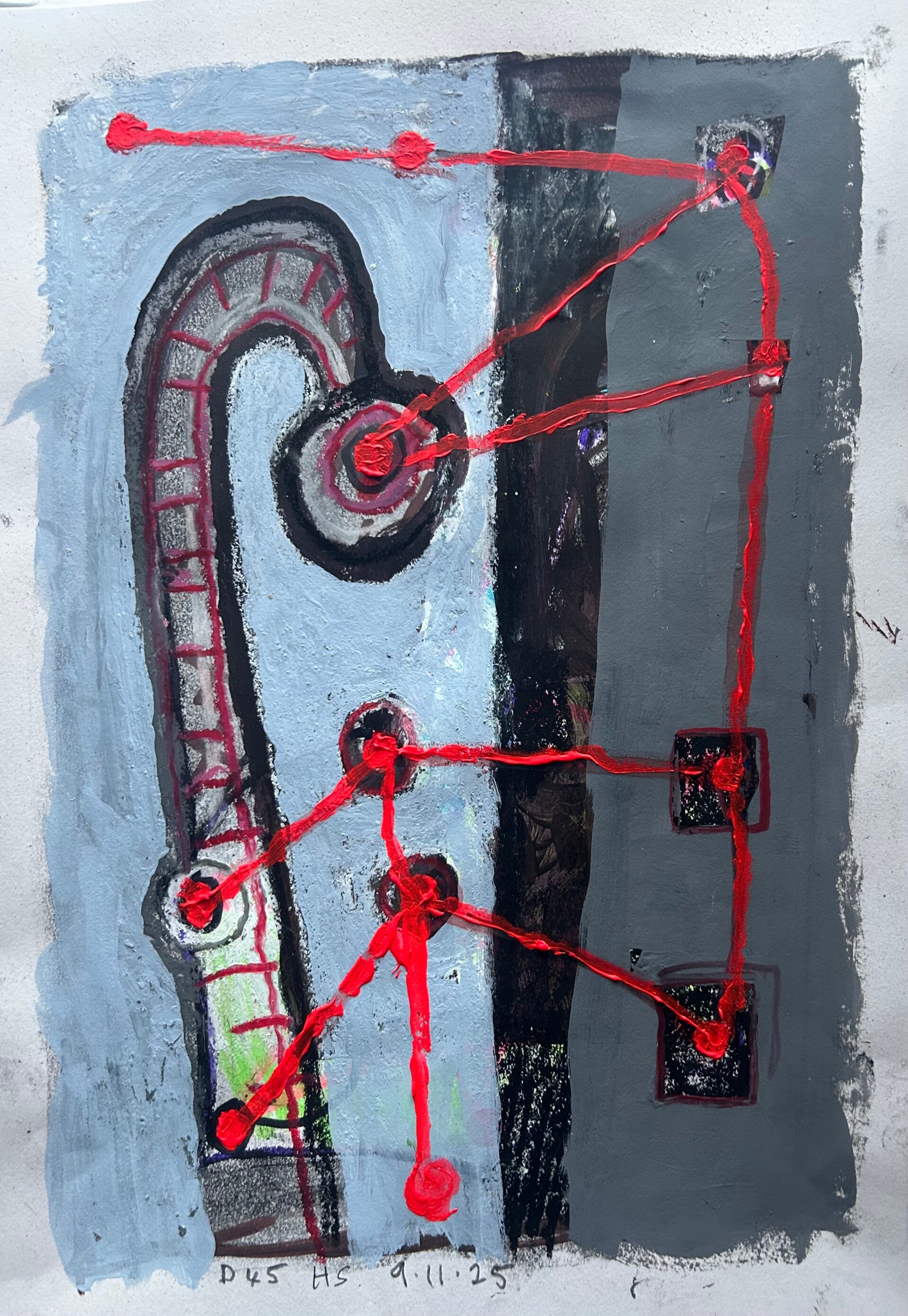 D45 9.11.25. Mixed media 29.7x42x0.1 cm. £100.