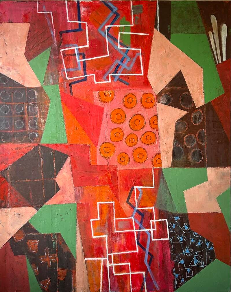 The painting below took hours and hours, over a period of months. It is a large oil painting and some drying times were required. Once the painting was underway I began to make decisions, pictorial decisions, about relationships, contrasts, shape, colour. Contrasts begin to move things about, change and develop as the evolving image dictates. The images were not there initially, then they were, on the surface in full colour, and I had found them. Like all painters I was looking for something, but didn't know what. That's the important thing. Put stuff down and relate to it, manipulate it, change it according to your instinct, skill, experience, and understanding of the pictorial values of shape, line, colour, texture, tonal value etc. Sometimes it's hit and miss, sometimes it just clicks, like the light bulb coming on. And you dash on and hope it gets better, but it often doesn't. All of this takes a long time. And we all need time to reflect, so longer still when coming back the next day or even later to check it out and probably finding stuff to change.