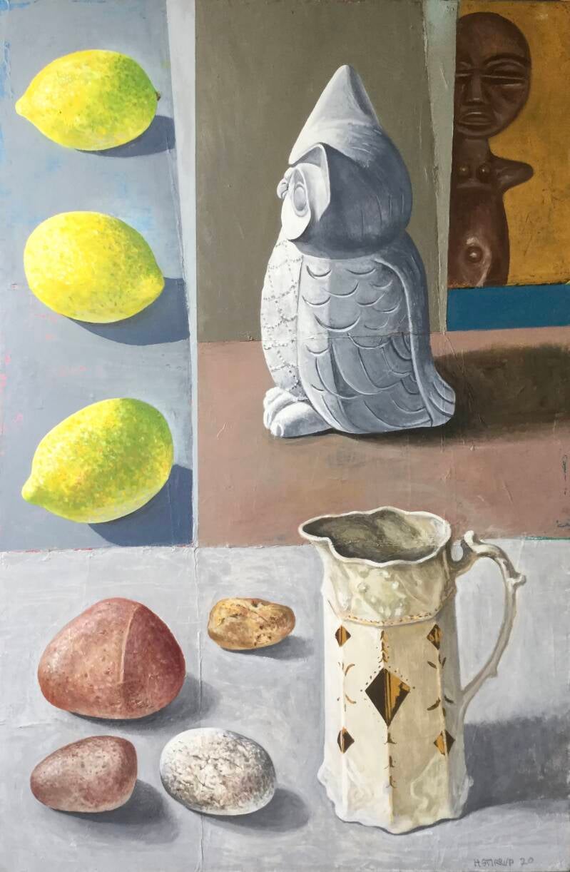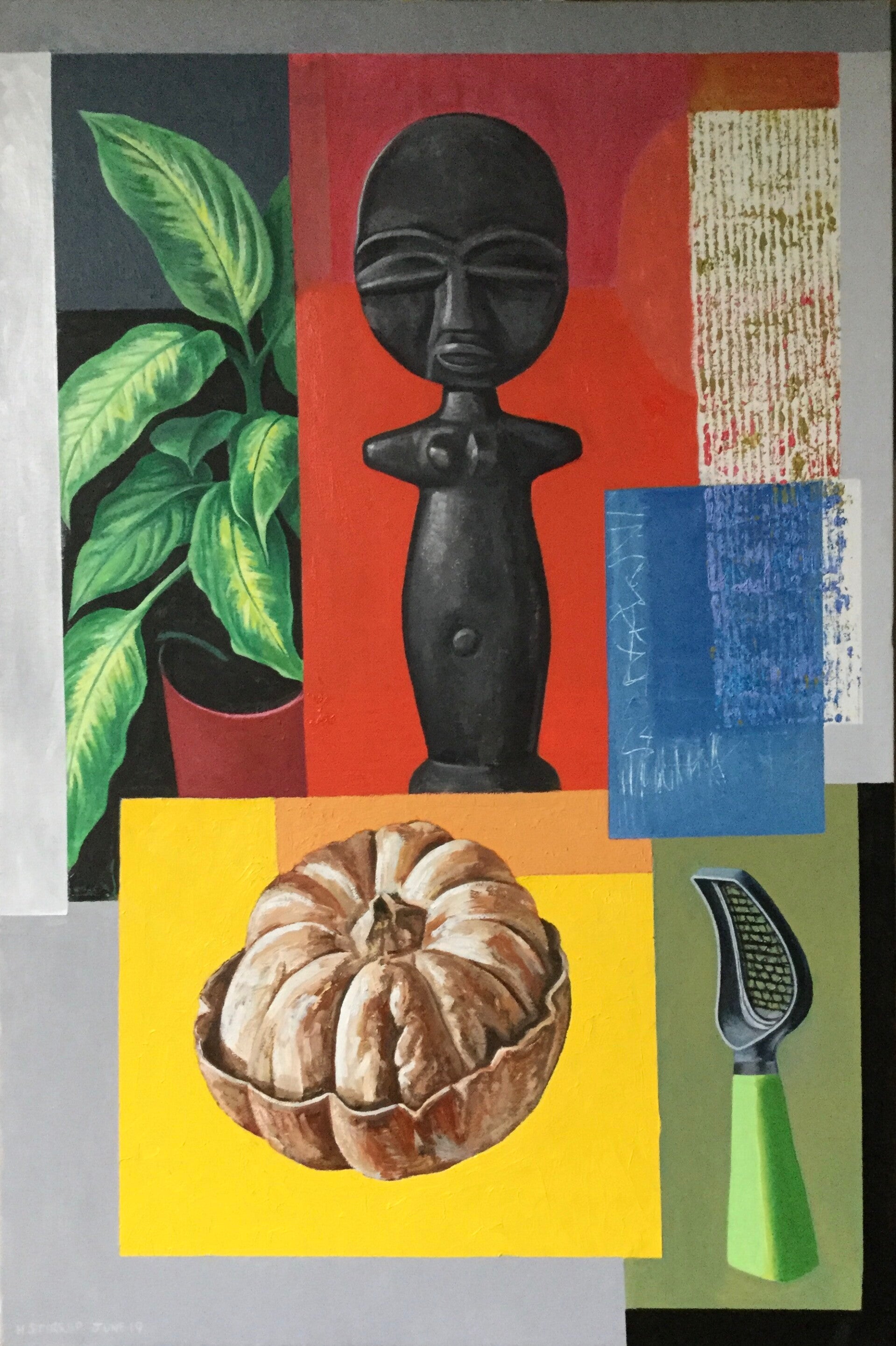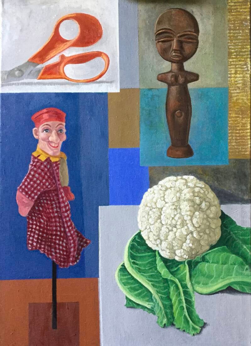 Composition with Plaster Venus. Oil and acrylic on canvas 75.5x108x2 cm. £500.